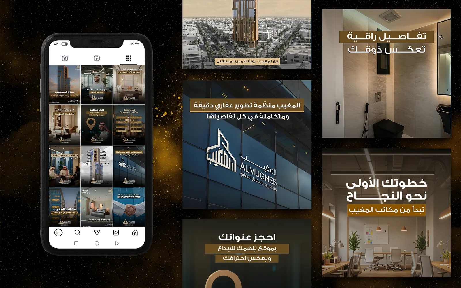 The social media management strategy for Al-Mughaib Real Estate Development focuses on strengthening digital presence, showcasing real estate projects, and building investor trust through professional, SEO-optimized content aligned with the real estate market.