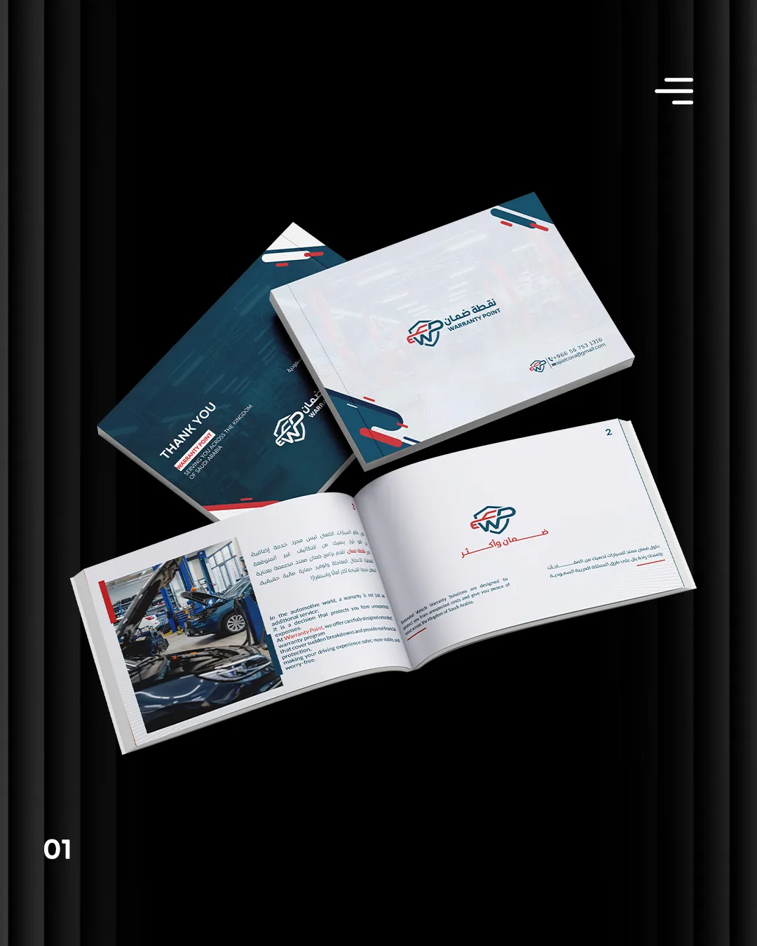 Professional front and back cover design Clean and structured inner layout Clear presentation of warranty services and plans Company overview and vision pages